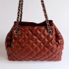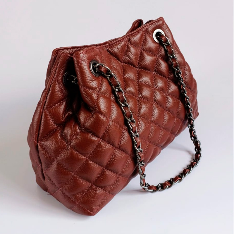 Bolsa de Couro Média Matelassê Café com ferragens em Prata. Bolso interno com zíper e outro bolso lateral interno. Cachuxo incluso uso opcional.