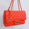 Bolsa de Couro Matelassê Clássica Vermelha com tampa dupla e correntes douradas. Medidas: 20cm de alt / 08cm de larg / 30cm de compr.