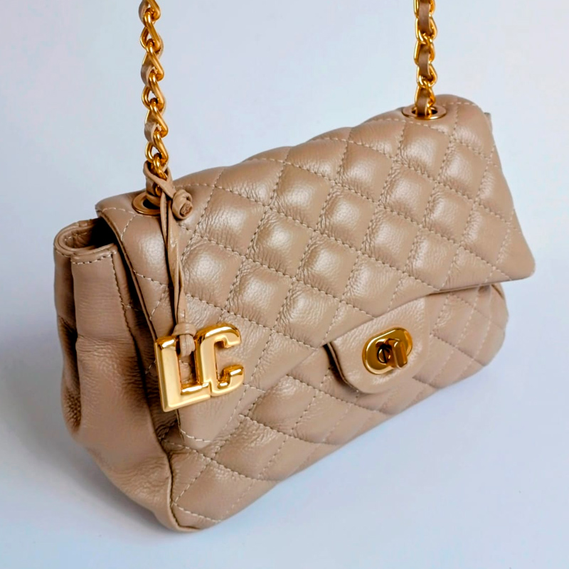 Bolsa de Couro Média Nude em Matelassê com ferragens em dourado. Medidas: 17cm alt / 10cm larg / 25cm compr.